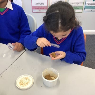 Attenborough Class spent a long time studying different rocks and soil types as part of their science learning with Mrs Deeley.  They looked at how they are formed and learnt about the different names and properties.