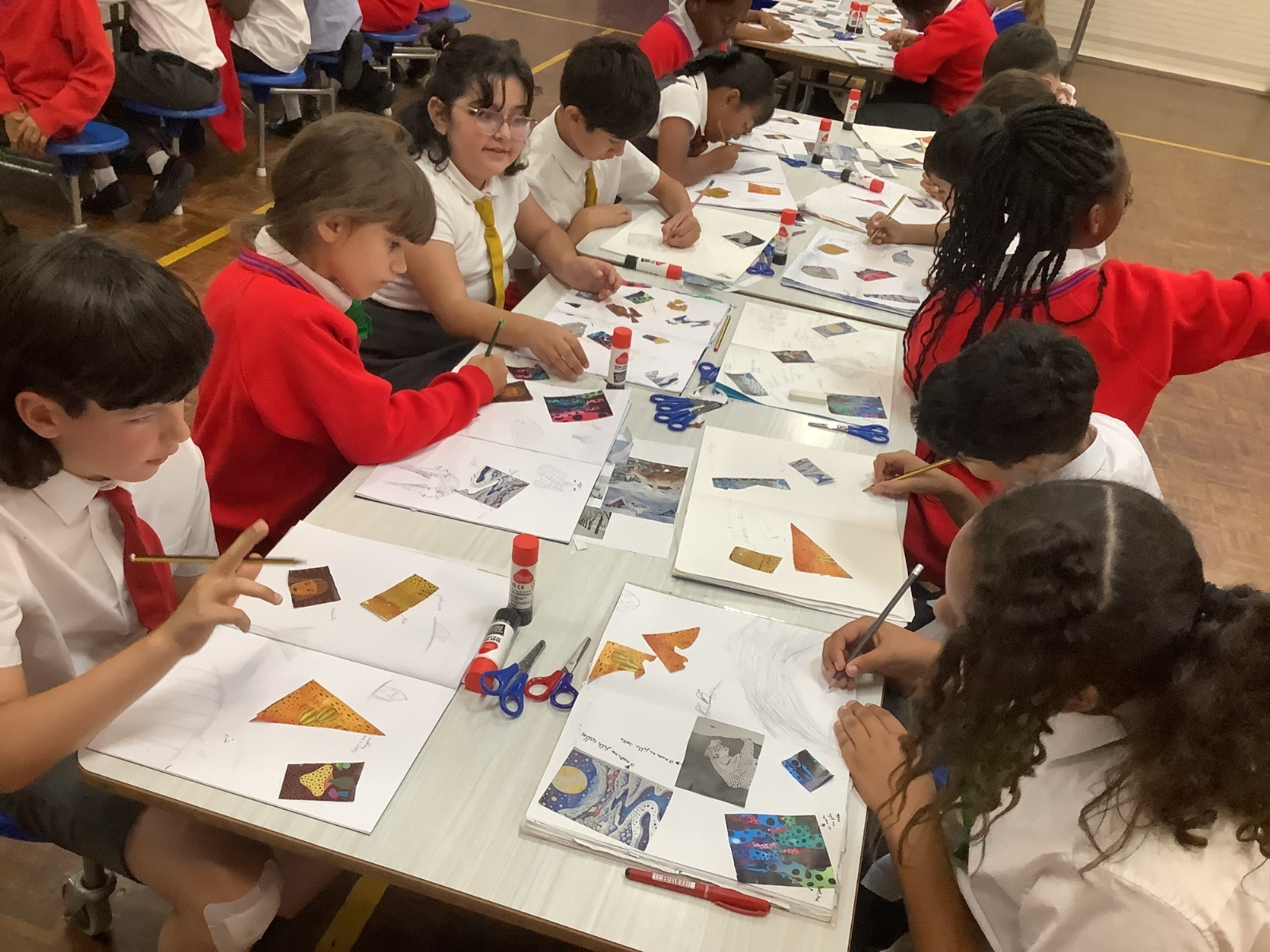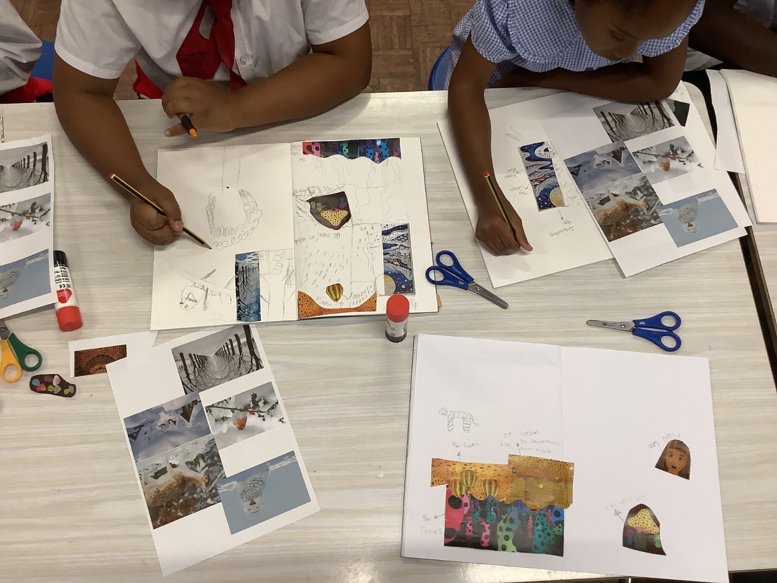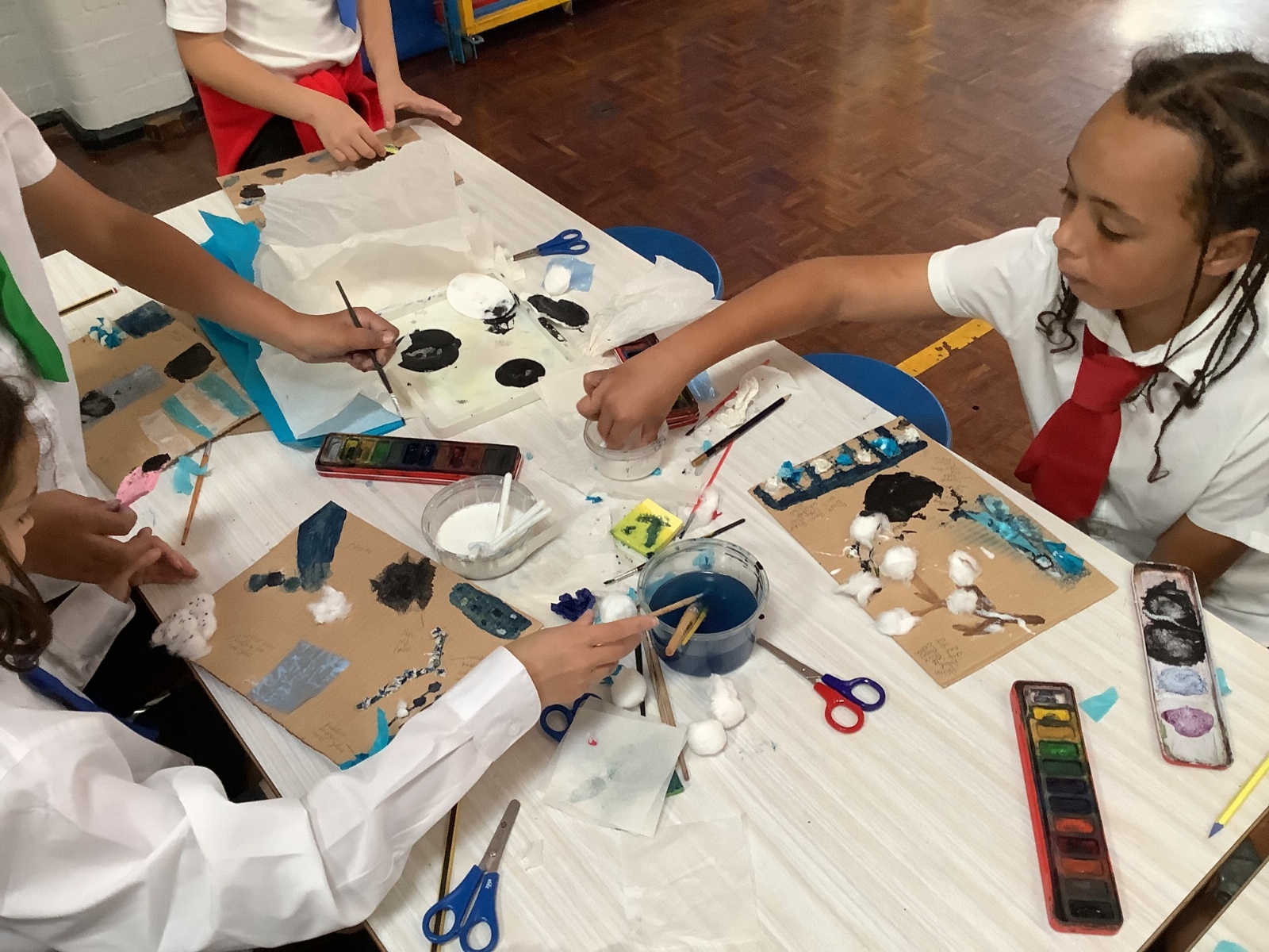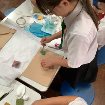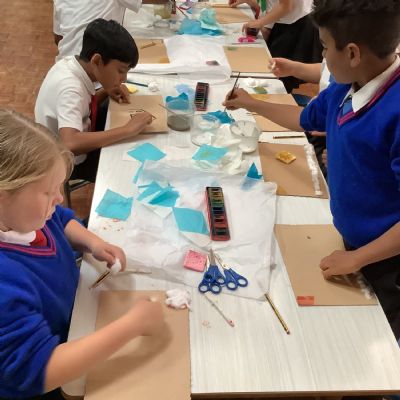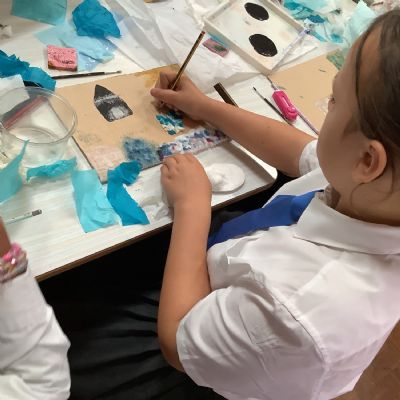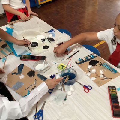 This term, Year 5 and 6 have been learning about the artist Yayoi Kusama and creating snowy landscapes linked to the book, 'The Princess’ Blanket' and their learning on Climate Zones. They used mixed media and developed their skills and knowledge of using texture and cool colour palettes to create their scenes.