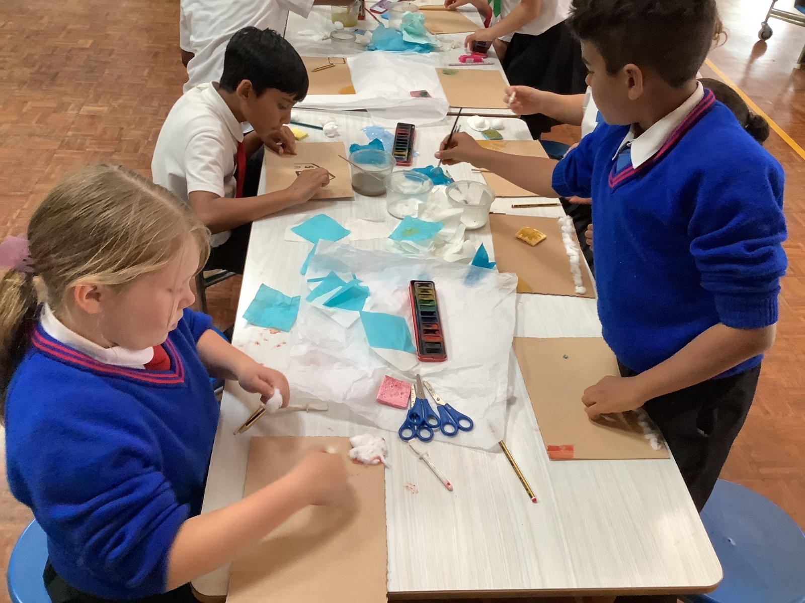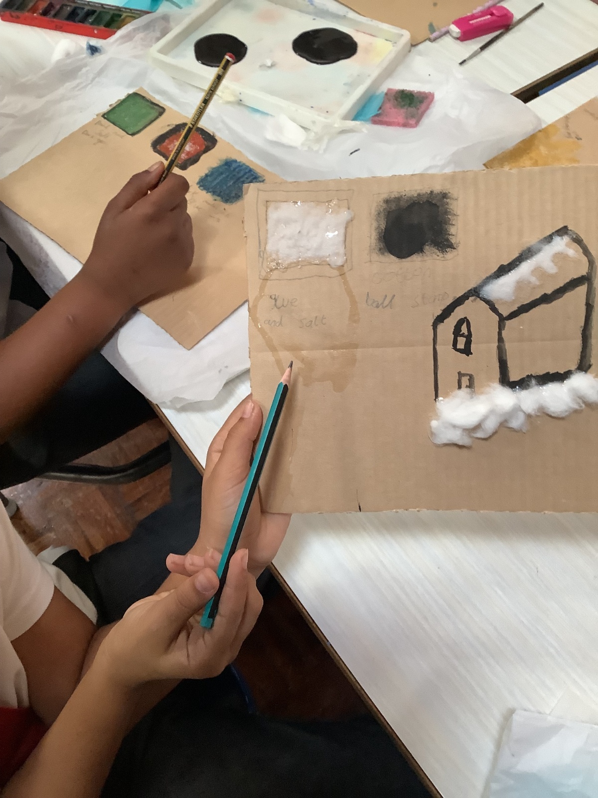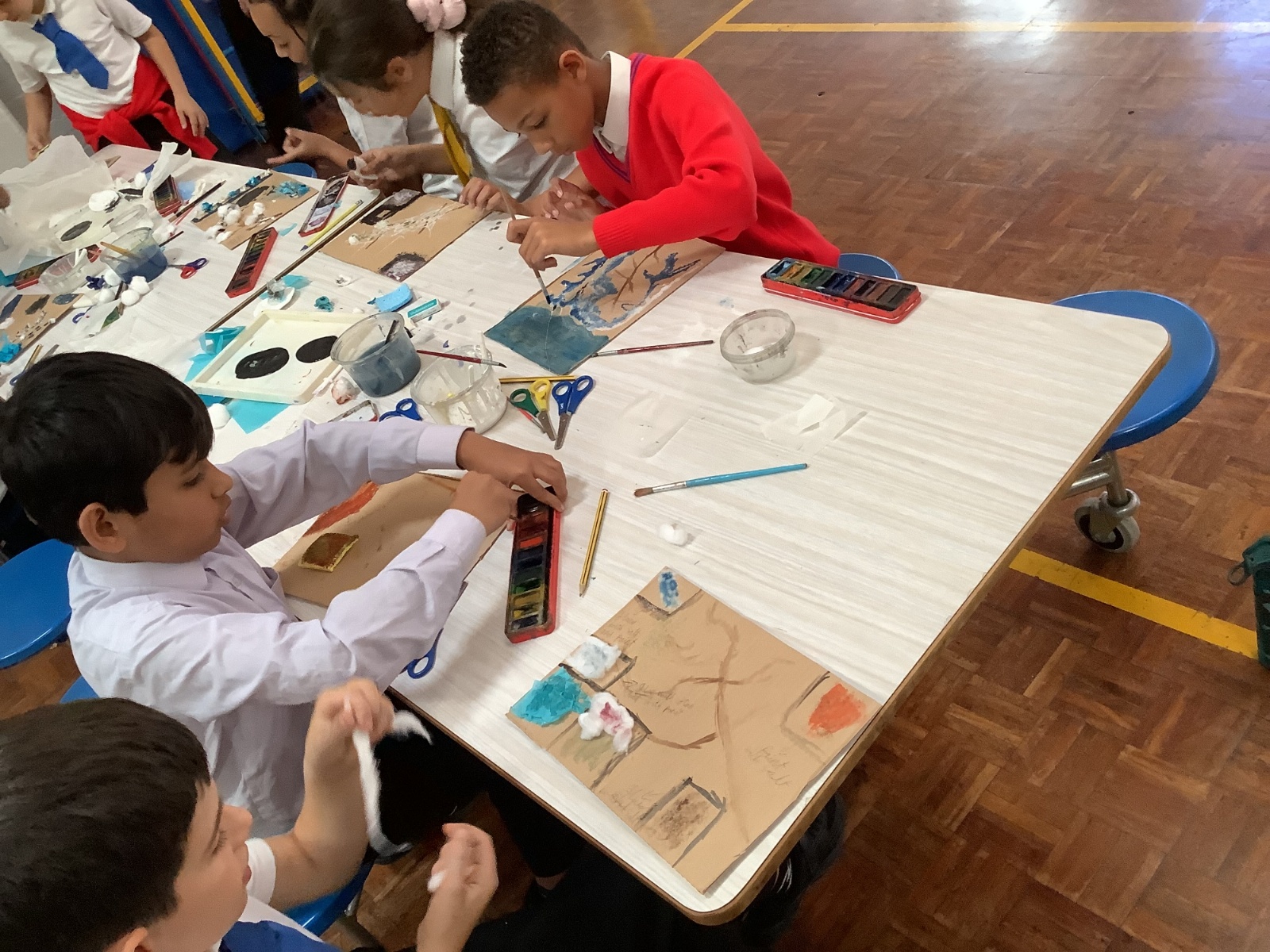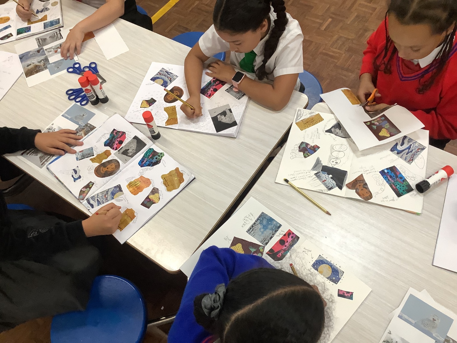 This term, Year 5 and 6 have been learning about the artist Yayoi Kusama and creating snowy landscapes linked to the book, 'The Princess’ Blanket' and their learning on Climate Zones. They used mixed media and developed their skills and knowledge of using texture and cool colour palettes to create their scenes.