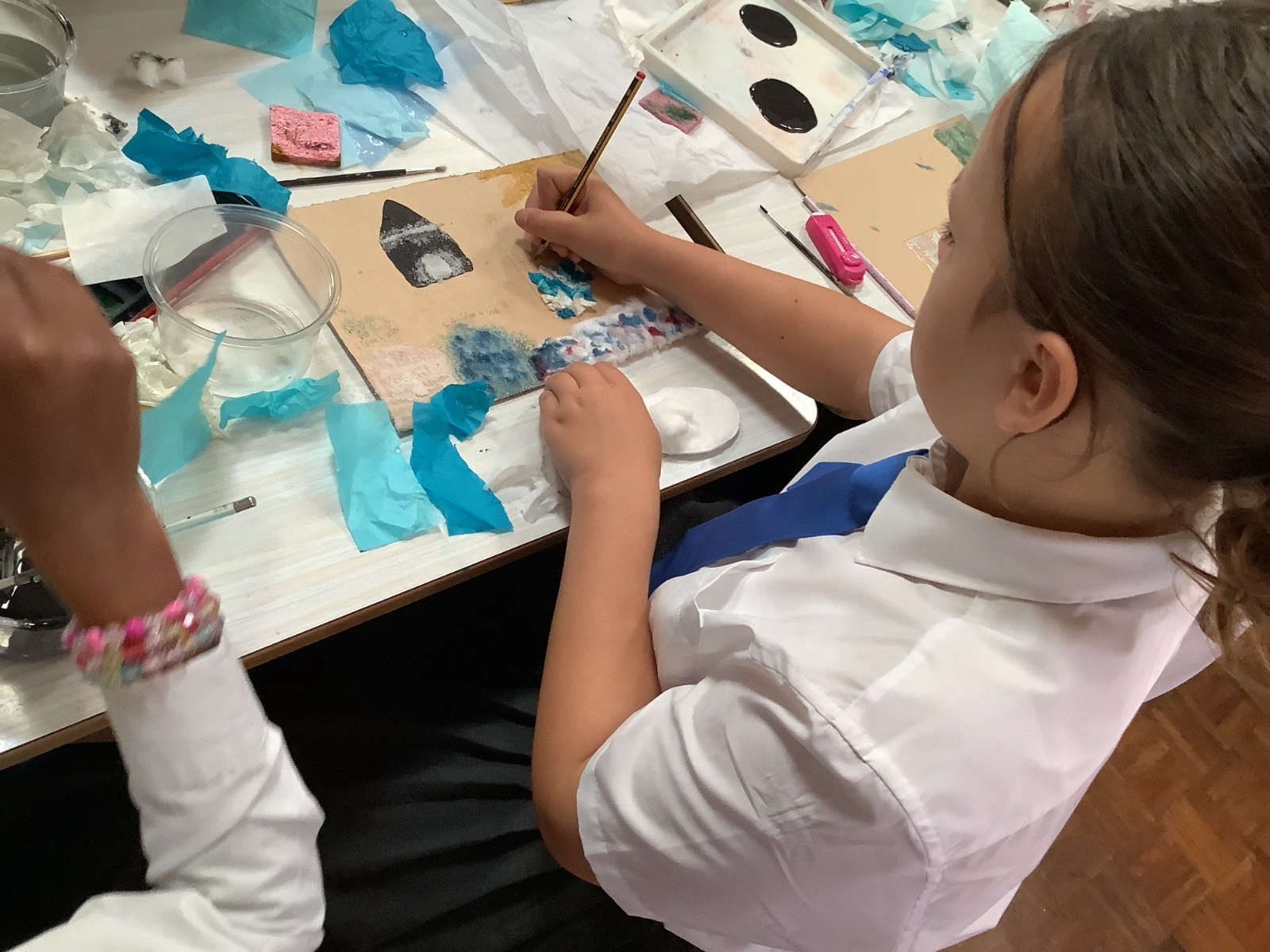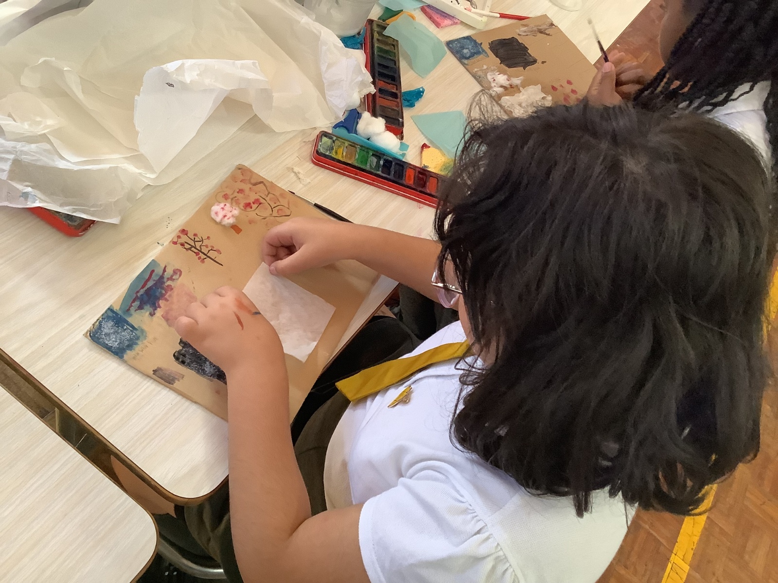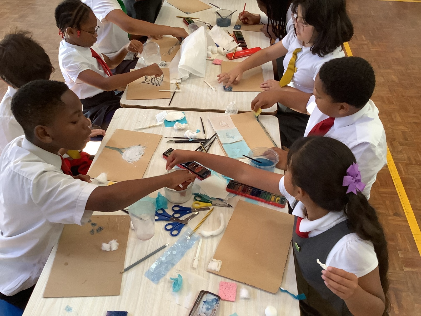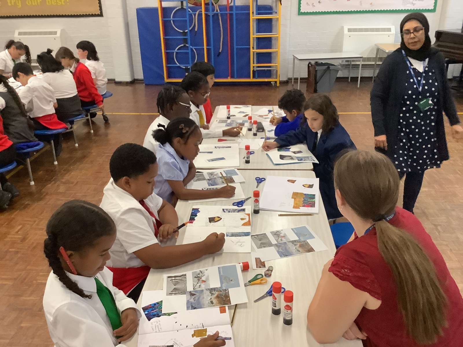 This term, Year 5 and 6 have been learning about the artist Yayoi Kusama and creating snowy landscapes linked to the book, 'The Princess’ Blanket' and their learning on Climate Zones. They used mixed media and developed their skills and knowledge of using texture and cool colour palettes to create their scenes.